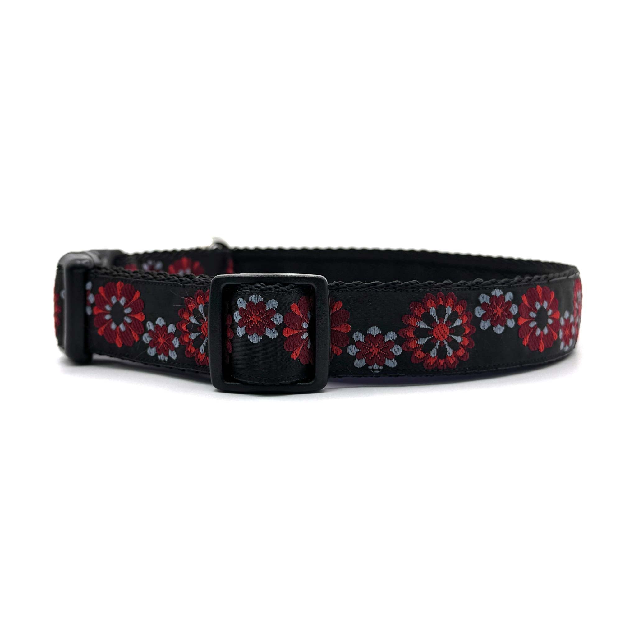 25mm wide, with soft sturdy cushion webbing for comfort, quick release Duraflex buckle for safety and stainless steel D ring for durability, this dog collar is made for both strength and style.