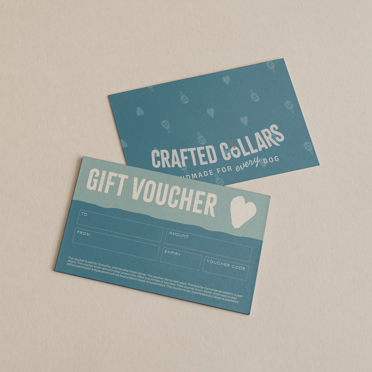 Valid for 18 months, redeemable online at Crafted Collars, or in person at events.