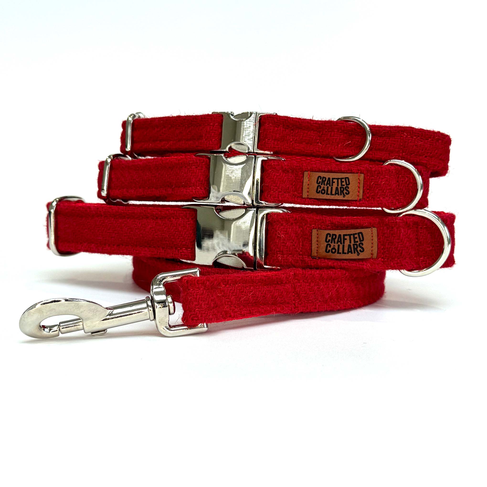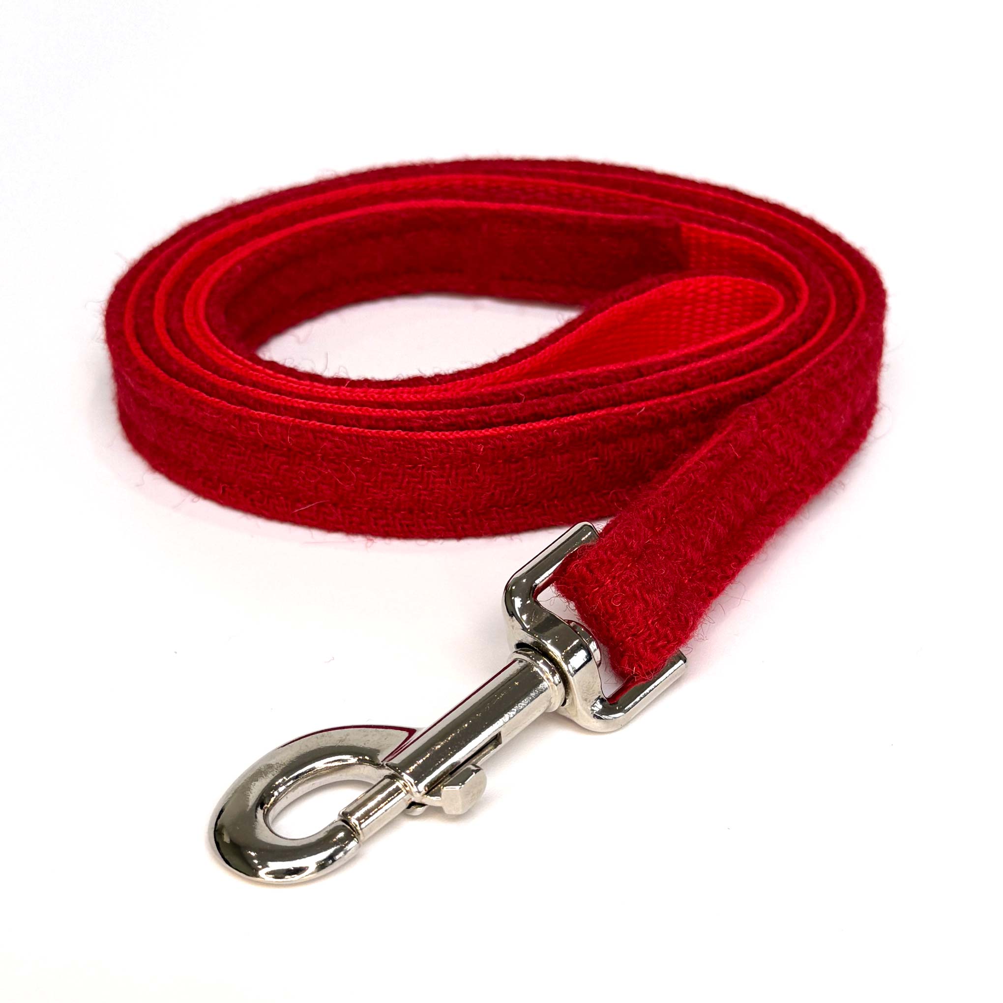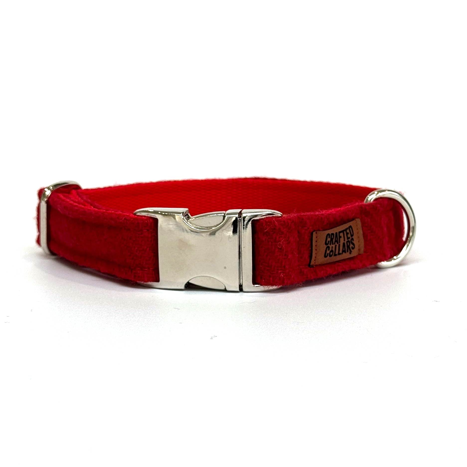 Add timeless style to your dog's wardrobe with this traditional plain weave Harris Tweed® dog collar in bold solid pillar box red.